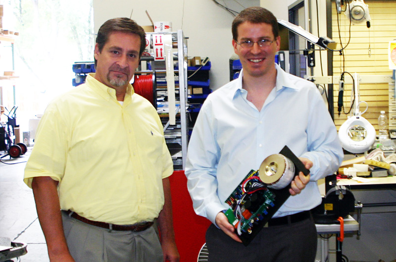 Dick Diamond (left) and Yoav Geva with an amplifier module for a YGA Kipod